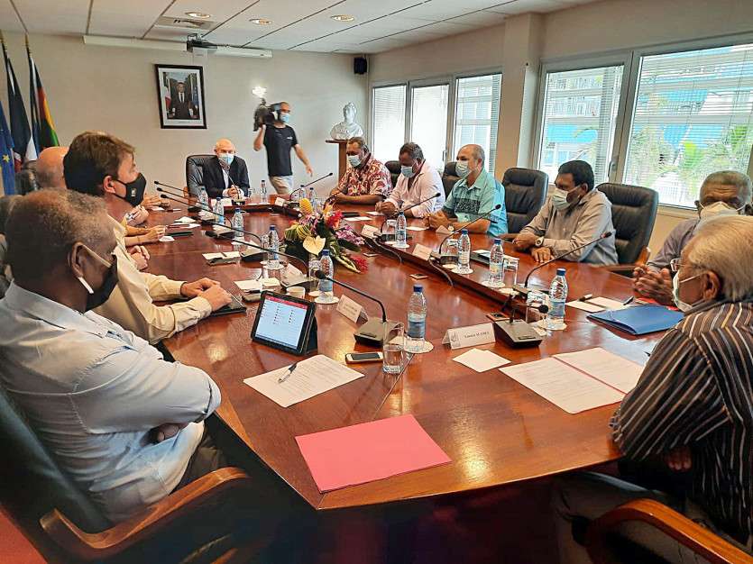 Les membres de l’exécutif viennent d’entrer en réunion, accompagnés du haut-commissaire de la République.