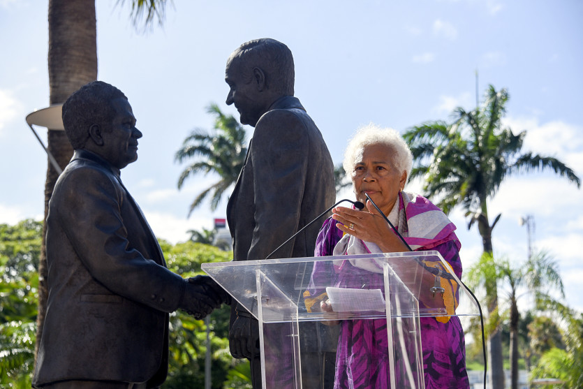 Le président Emmanuel Macron promeut ainsi Marie-Claude Tjibaou, née Wetta, veuve de Jean-Marie Tjibaou et ancienne présidente du centre culturel du même nom au rang de commandeur de l’ordre national de la légion d’honneur.