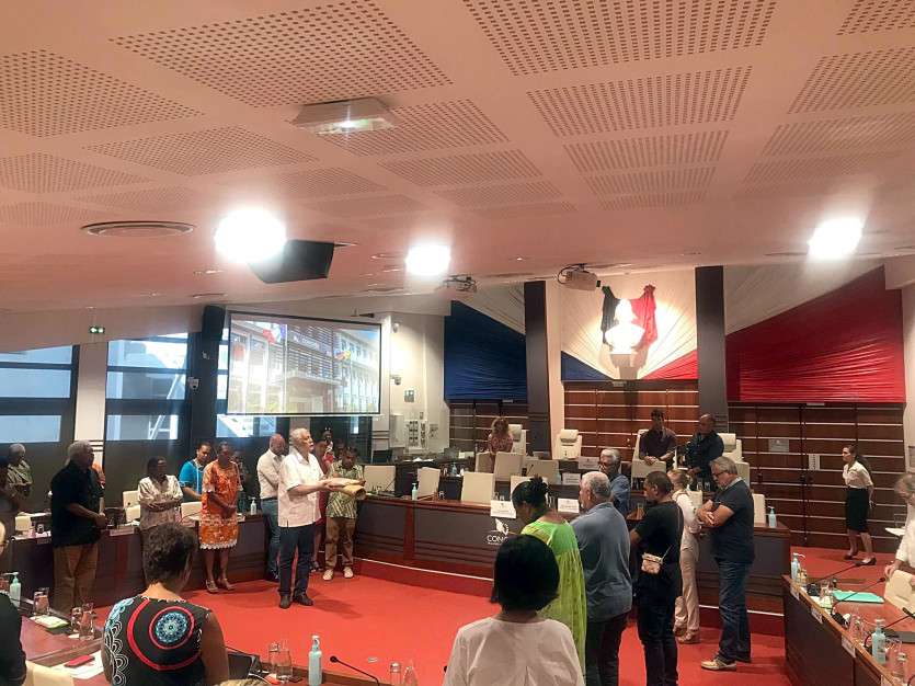 - J.M | Crée le 03.11.2022 à 09h55 | Mis à jour le 03.11.2022 à 11h59ImprimerCérémonie d’ouverture suivie d’une minute de silence. Photo Julien MazzoniLes élus du Congrès étudient cinq délibérations ce matin dont une relative au schéma de transition énergétique.