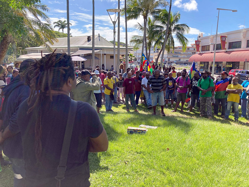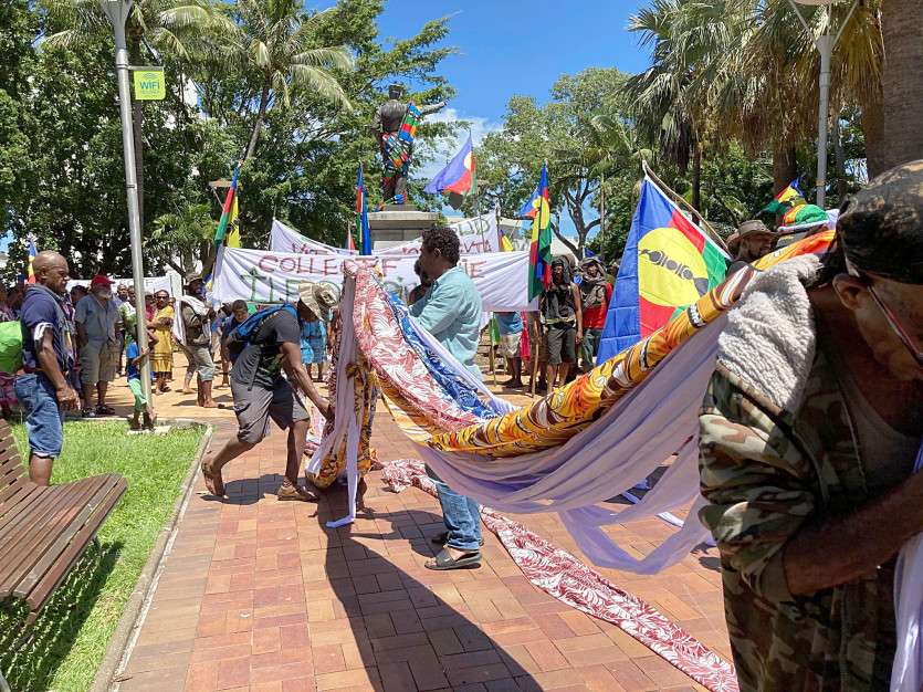 Une chaîne humaine a relié la statue du gouverneur Orly au Mwa Ka à l’aide de manous. "Nous sommes ici sur la place de la Paix parce qu’on veut dire qu’on est prêt aux nouvelles discussions. Nous sommes toujours contre Trafigura et Beurrier, nous pensons toujours qu’il vaut mieux d’autres repreneurs plus compétents", a déclaré André Selefen, référent de la tribu de N’Dé.