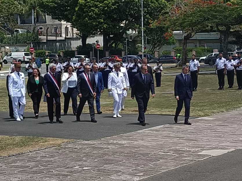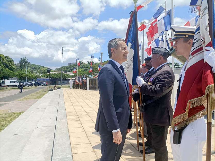 - | Crée le 28.11.2022 à 01h00 | Mis à jour le 28.11.2022 à 12h40ImprimerAvant de se plier au traditionnel dépôt de gerbe, le ministre de l'Intérieur, Gérald Darmanin, a passé en revue les forces de l'ordre et militaires présentes. Photo F.CLa matinée du ministre de l'Intérieur a commencé par une cérémonie des honneurs militaires à la place Bir-Hakeim puis d'une coutume de bonjour au Sénat coutumier.