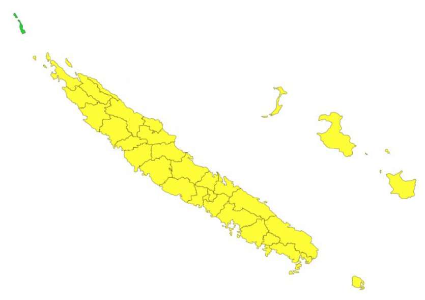 Météo France Nouvelle-Calédonie a placé l’ensemble du pays, hormis les Bélep, en vigilance jaune fortes pluies/orages pour de fortes averses et parfois de l’orage sur la côte Est, l’extrême Sud et les Loyauté cet après-midi, et sur la côte Ouest et les Loyauté la nuit prochaine.