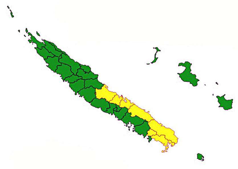 Les communes de Dumbéa, du Mont-Dore ainsi que la moitié sud de la côte Est, de Houaïlou à Yaté, ont été placées en vigilance jaune fortes pluies et orages par Météo France NC.