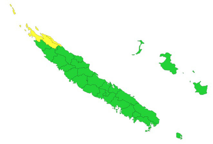 Vigilance jaune Vent Fort de Pouébo à Bélep : le vent de secteur Est souffle avec des rafales de 35 à 40 kt (65 à 75 km/h), aujourd'hui et la nuit prochaine. Vigilance jaune Fortes pluies / Orages sur Bélep pour un risque orageux aujourd'hui et la nuit prochaine.