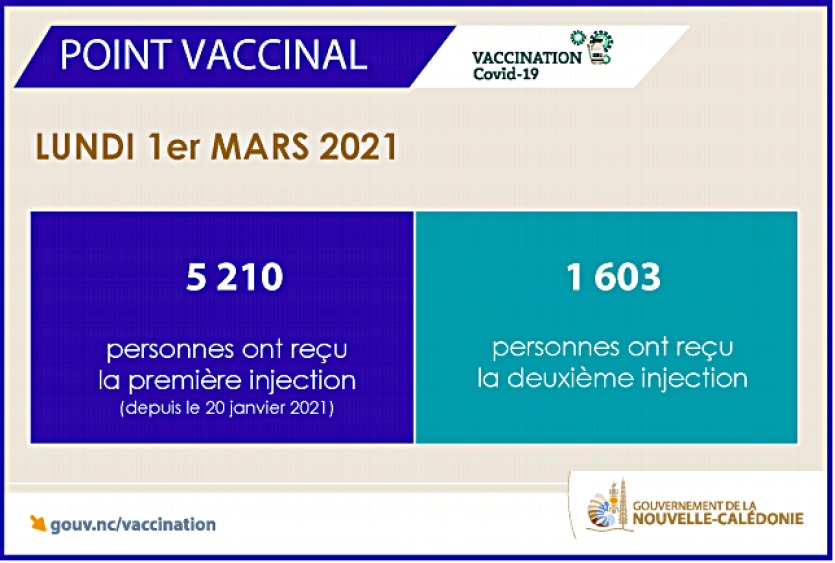Accueil > Infos en direct > Nouvelle Calédonie > Santé > Covid-19 : 5 210 personnes ont été vaccinées depuis le 20 janvier