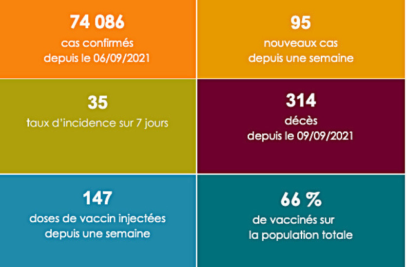 Le point sanitaire du gouvernement de ce mardi ne fait mention d’aucun décès supplémentaire à déplorer en raison de la Covid-19. 314 personnes en sont décédées depuis le 9 septembre 2021. Depuis une semaine, 57 cas positifs ont été confirmés. Les cas positifs comptabilisés s’élèvent aujourd’hui à 74 139. Le nombre de cas actifs est de 87. Le taux d’incidence cumulé sur sept jours glissants est de 21 pour 100 000 habitants, reculant encore un peu plus puisqu’il était de 35 la semaine dernière. Enfin, 73 769 personnes sont considérées comme guéries par les services médicaux qui les ont accueillies.