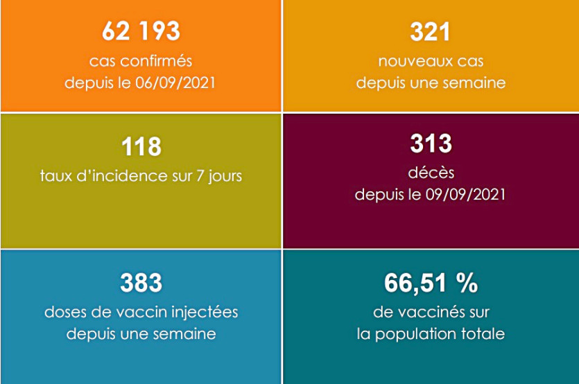 Les cas positifs confirmés en une semaine s’élèvent à 321 avec 470 cas actifs. Le taux d’incidence sur 7 jours est donc passé à 118 pour 100 000 habitants au lieu de 135 il y a une semaine.