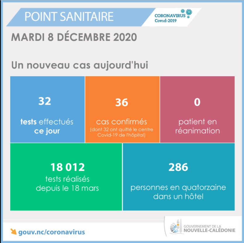 - Le gouvernement annonce qu'un nouveau cas de Covid-19 a été détecté. Sur 32 tests effectués ce jour.Depuis le 18 mars, 18 012 tests ont été réalisés sur le Caillou. 286 personnes sont actuellement en quatorzaine. Ce nouveau cas porte à 36 le nombre de personnes testées positives en CalédonieIl vous reste 5% de l'article à découvrir.Cet article est réservé aux abonnés.