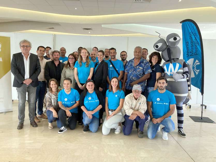 - Anthony Tejero | Crée le 04.08.2021 à 11h20 | Mis à jour le 04.08.2021 à 18h26ImprimerLes équipes du Word mosquito program, de la mairie de Nouméa, de l'Institut Pasteur et du gouvernement ont présenté les premiers résultats de l'opération Wolbachia. Photo A.T.Au terme de deux ans d'opérations sur le terrain, près de 70 % des moustiques de Nouméa contiennent la bactérie Wolbachia, qui empêche la transmission de la dengue.
