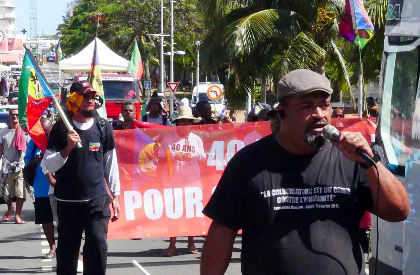 En tête du cortège, Fidel Malalua, 4e vice-président de l’USTKE. Photo G.C.Près de 450 personnes ont participé à la marche, estiment les organisateurs (350 selon la police), soit une affluence relativement faible pour un défilé de l’USTKE. "C’est tout à fait compréhensible. On sort du confinement, il y a eu les cyclones… Les gens sont un peu fatigués", estime André Forest, président du syndicat. "Mais on tenait quand même à marquer le coup car c’est une tradition. Et l’USTKE n’a pas pour habitude de déroger à ses traditions."