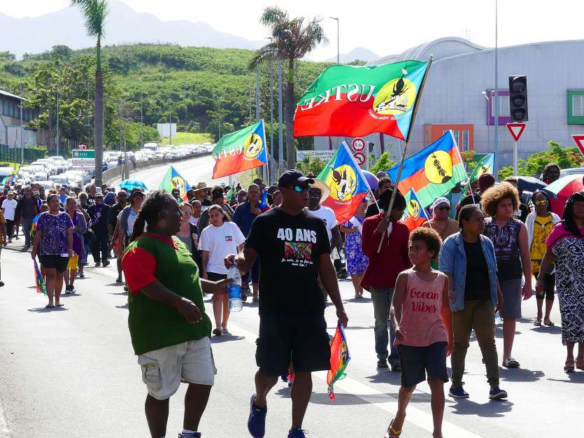 "Trop radical, trop kanak, trop politisé… Certains pensaient que l’USTKE mourrait dans l’œuf. Quarante après, on est toujours là, avec un message toujours aussi légitime", lance Fidel Malalua, 4e vice-président du syndicat, qui ouvre la marche de ce premier défilé depuis 2019, puisque l'édition 2020 avait été annulé en raison de la crise sanitaire.