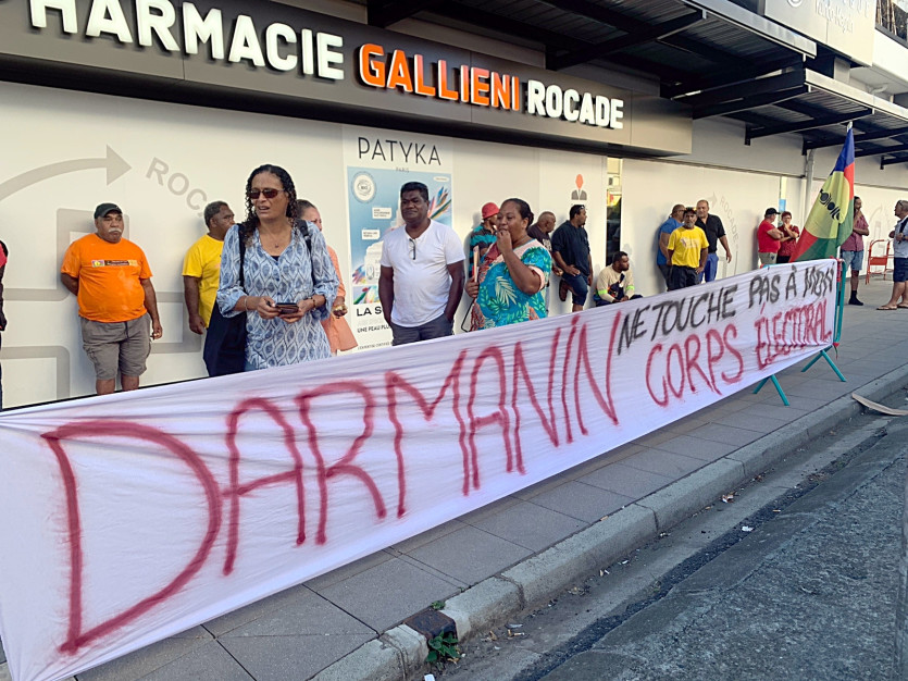 En marge de la mobilisation du collectif Agissons solidaires, un rassemblement de plusieurs dizaines de personnes. Ils arborent des drapeaux du FLNKS et ont positionné des banderoles demandant notamment au ministre de l’Intérieur de ne pas toucher au corps électoral. Tous affichent leur soutien au gouvernement Mapou. "Ils essaient d’engager des réformes pour le pays qui est fragile. Je ne comprends pas d’ailleurs pourquoi ils sont devant le gouvernement alors que c’est au Congrès qu’est porté ce texte", explique Christian Tein, commissaire général de l’UC. "Ce n’est jamais bon quand la population descend dans la rue, elle se clive. L’Usup [le collectif "Usine du sud = usine pays"] est parti de rien attention."