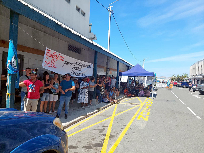 Les syndicats ont souligné que l’épreuve du baccalauréat de philosophie n’est pas, en ce lundi matin, impactée par la mobilisation. Photo Sarah Maquet"On veut retrouver du pouvoir d’achat, explique Steeve Teriitehau, le secrétaire général de la Fédération des fonctionnaires, on veut bien faire un geste et accepter une revalorisation de 0,5 % en janvier 2023, de façon à nous laisser six mois supplémentaires pour travailler sur l’élaboration du budget supplémentaire avec les nouvelles recettes de la réforme fiscale qui arriveraient, mais il est impensable d’accepter ce que l’on nous propose pour l’instant, soit un seul groupe de travail en juillet 2023."