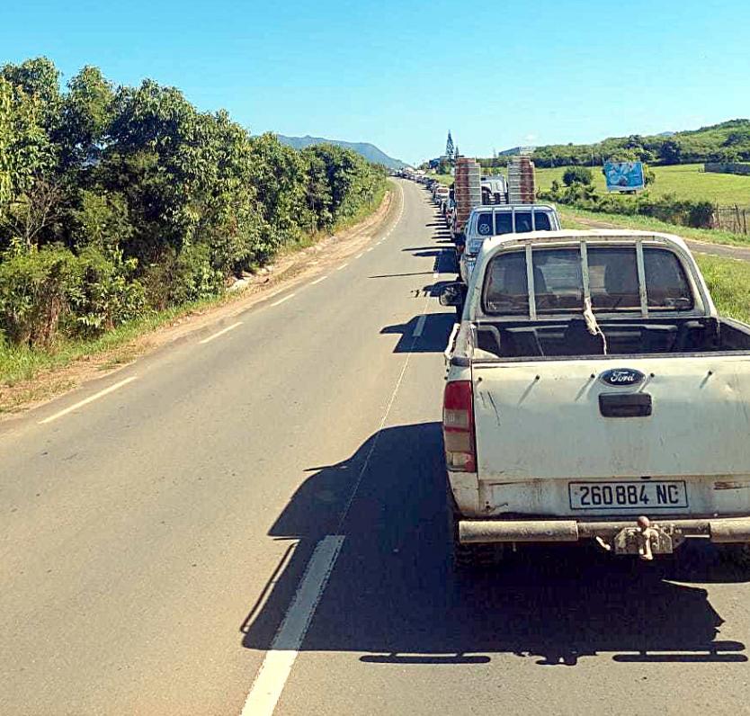 Gros embouteillage pour arriver à Koné. Photo Waldemar De Laage[MaJ 9h 15] La plupart des stations services Mobil, Total et Shell du territoire sont fermées depuis 8 heures et jusqu’à 12 heures, en soutien au manifestants regroupés sous le collectif Agissons solidaires. Plusieurs stations jointes par téléphone ont confirmé que l’ouverture pourrait être repoussée.