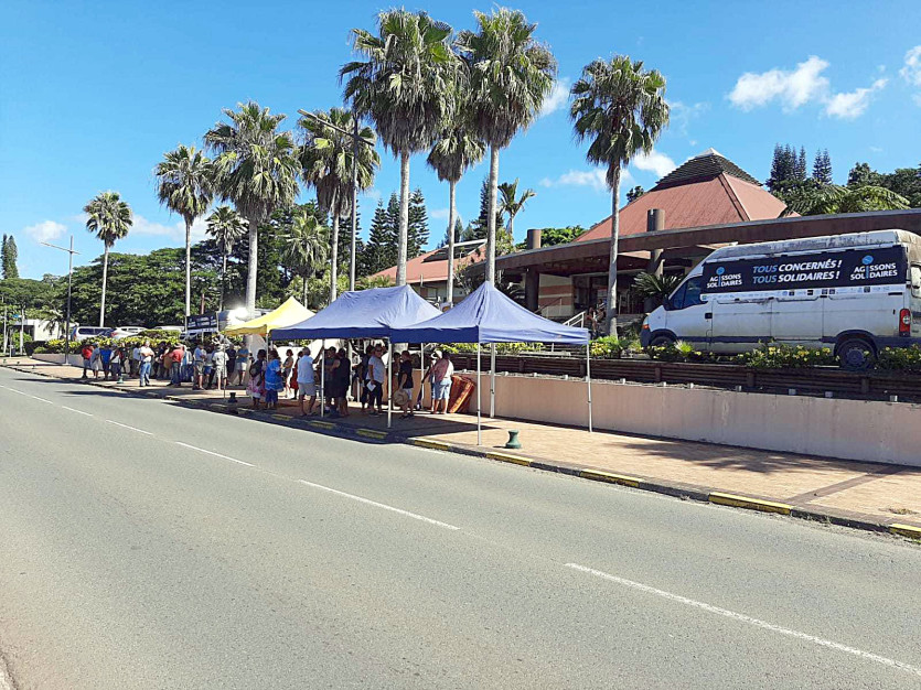 Sur le rond-point de l’Ancre marine, la circulation est bloquée toutes les 10 minutes. Photo Delphine Bossy[MàJ 14h15] Dans un communiqué, le collectif "Tous concernés tous solidaires" annonce mettre en place des carrefours et rond-point filtrants. Les points de ralliements des manifestants sont : Eau Vive – Ancre de Marine – Almameto – Magenta – Mageco – Ducos Forest – Ko We Kara – Bourail – Koné – La Foa – Poya.