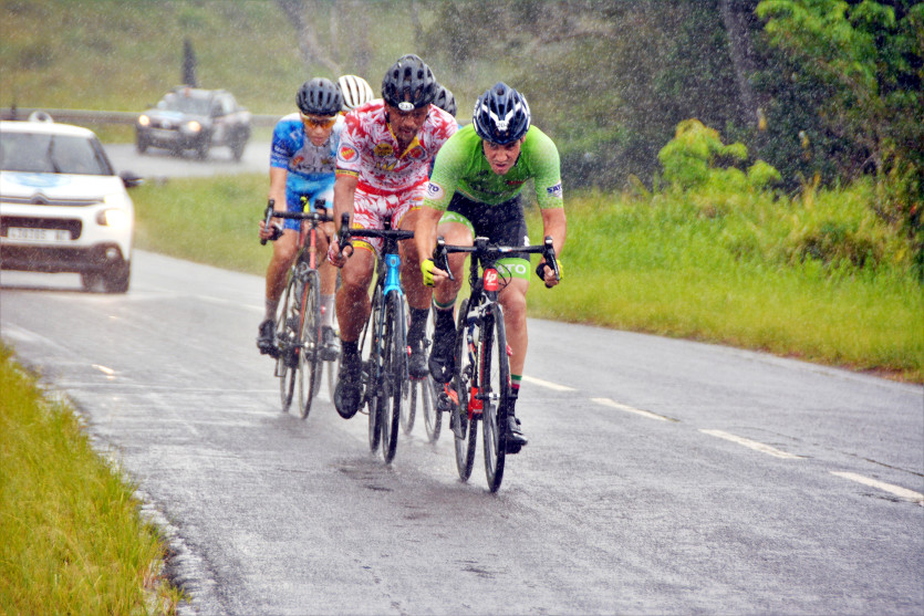 Après la transversale entre Bourail et Houaïlou, l’étape s’annonçait plus roulante entre Houaïlou et Ponérihouen. Elle n’était pas simple non plus, avec le passage du col de Ho en début d’étape et la pluie qui s’est abattue quasiment sans interruption sur le parcours.