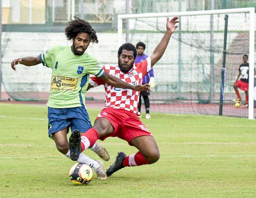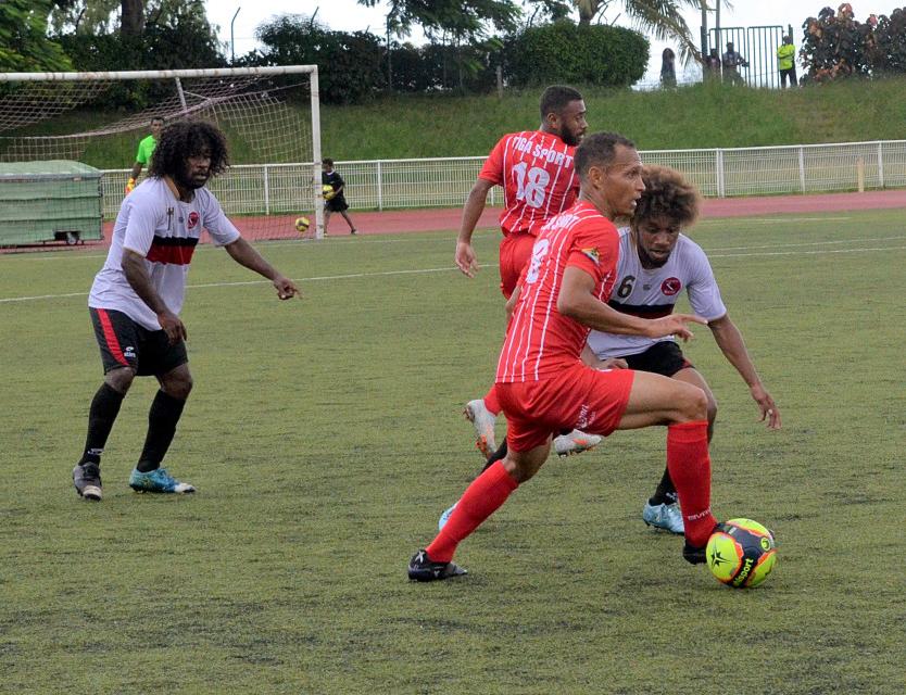 Tiga (en rouge) n’a pas réussi à aligner une 6e victoire. Photo Anthony FilletUn peu plus tard, à Koné, Hienghène a battu Lössi (2-1).