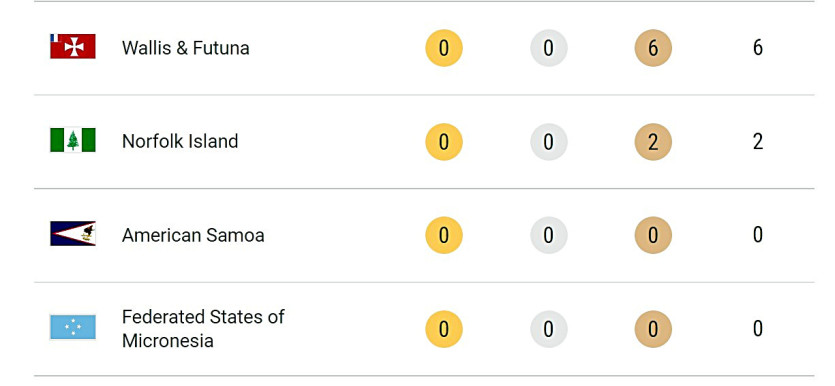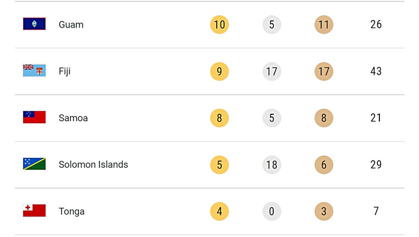Les sportifs des Mariannes, nombreux puisqu’à domicile et au niveau inégal selon les athlètes engagés, finissent 3es avec 38 médailles dont 16 en or. C’est autant de victoires que l’Australie, 4e alors qu’elle était alignée seulement en athlétisme et en haltérophilie.