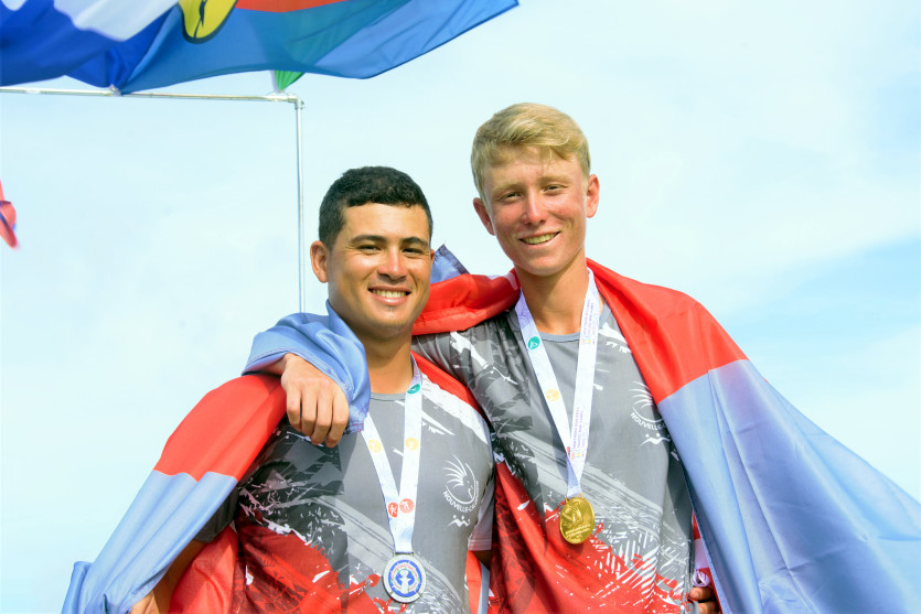 Hugo Koch (à droite) a gagné vendredi le tournoi individuel de golf, devant Guillaume Castagne. Photo Claire GaveauIls ont ramené des médailles dans toutes les disciplines hormis au tennis et au beach-volley, les deux seuls sports où il y avait des Calédoniens mais pas de Calédoniennes.
