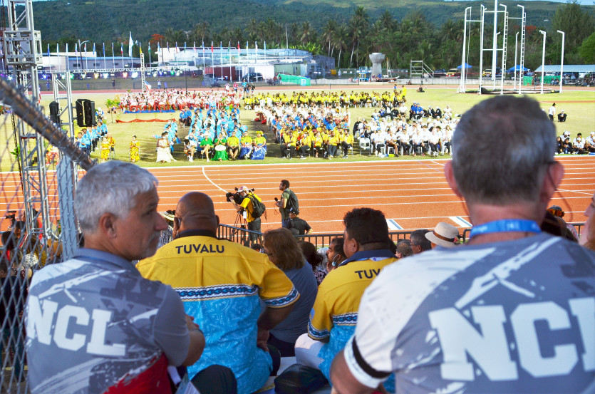 Une fois que les Cagous ont défilé, ils se sont assis, regardant les autres pays passer. Photo Anthony Fillet