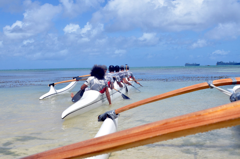 Lola Alibaud et les Tahitiennes ont régulièrement échangé sur le parcours. Photo Anthony FilletLes rameurs terminent avec huit médailles