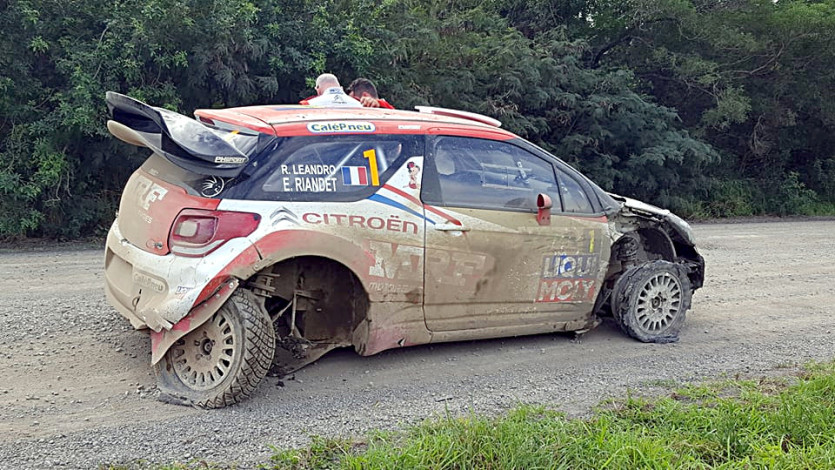 A la mi-journée, pourtant, la course était dominée par Eric Riandet et Romain Leandro. Mais le duo, victime d’une double crevaison impressionnante et d’une casse mécanique lors de la sixième spéciale, après avoir heurté une pierre, a été contraint à l’abandon alors qu’il comptait presque 17 secondes d’avance au général.