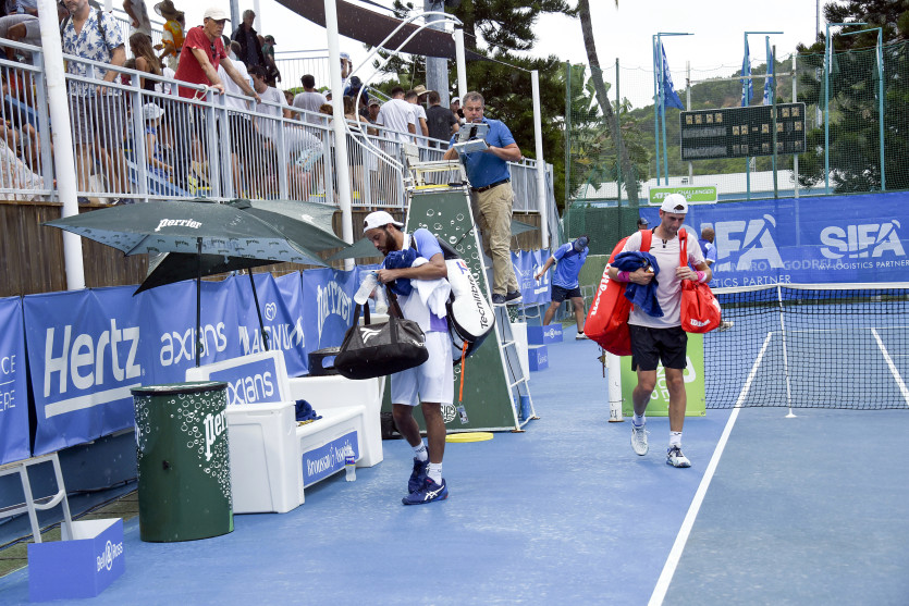 Dans le courant du deuxième set, la pluie et même quelques orages ont fait leur apparition dans le ciel nouméen, laissant craindre une possible interruption. Si le match s’est poursuivi dans un premier temps, Laurent Lokoli s’offrant même une balle de match dont il rêvera certainement pendant longtemps (il a levé les bras en pensant avoir gagné), la pluie s’est finalement intensifiée, poussant les officiels à stopper le duel alors que le Français avait dominé la première manche (6-4), mais était mené dans la deuxième (6-5).