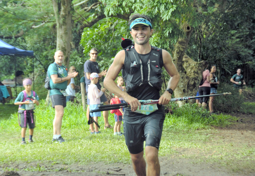 Après sa victoire en équipe samedi en triathlon lors du Chronodore, Alexy Dianoux s'est imposé en solitaire lors du Dmba Trail, organisé dans la vallée de Koé. Malgré des cuisses "un peu lourdes" après son effort de la veille, le trentenaire a rapidement pris la course à son compte sur un parcours "bien gadoue". Il s'impose après 2h40'8 de course.