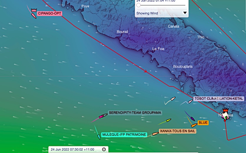 En dernière position, on retrouve Cipango, qui redescendait la côte Ouest, entre Koné et Poya, au moment d’écrire ces lignes. Selon les dernières estimations, il devrait arriver dans la matinée de samedi.