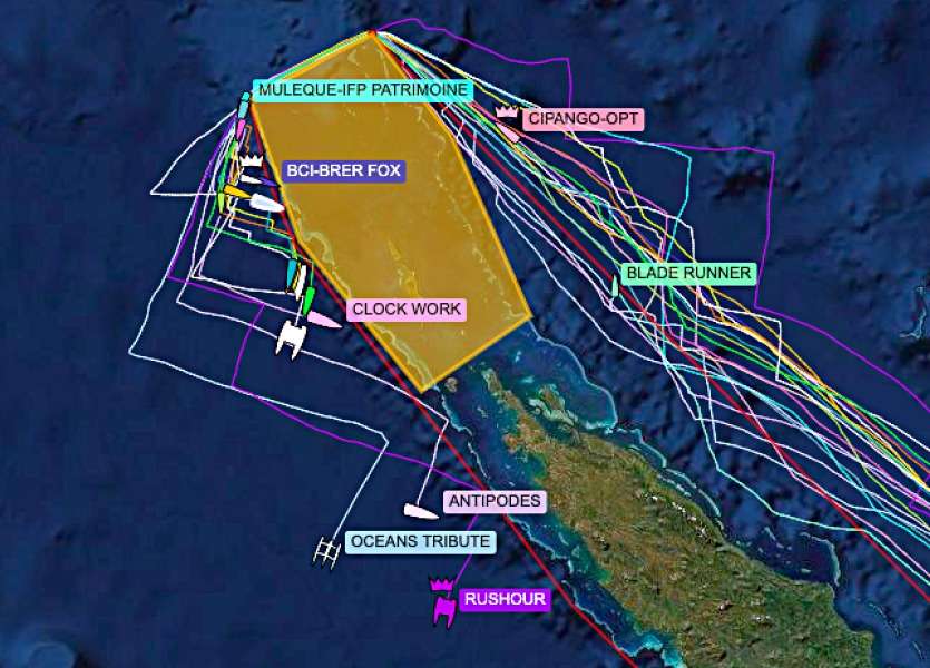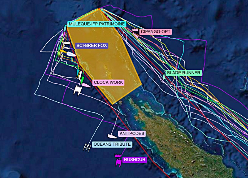 Si le groupe de tête est à hauteur de Koumac en ce début de nuit, le reste de la flotte est relativement resserrée derrière. Actuellement 4e en temps réel, le catamaran Kalolo est au niveau de Belep, alors que le 19e, Muleque – IFP Patrimoine sort tout juste du Grand Passage.