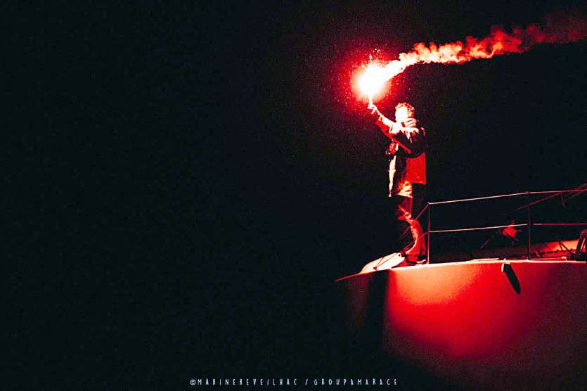 - Titouan Moal | Crée le 22.06.2022 à 16h04 | Mis à jour le 23.06.2022 à 01h20ImprimerLes marins de Rushour ont allumé une fusée pour fêter son passage de la ligne d'arrivée. Photo Marine ReveilhacC’est fait. Après une course menée de bout en bout ou presque autour de la Nouvelle-Calédonie, les marins du catamaran australien Rushour ont passé le sourire aux lèvres la ligne d’arrivée, baie de la Moselle, un peu avant minuit.