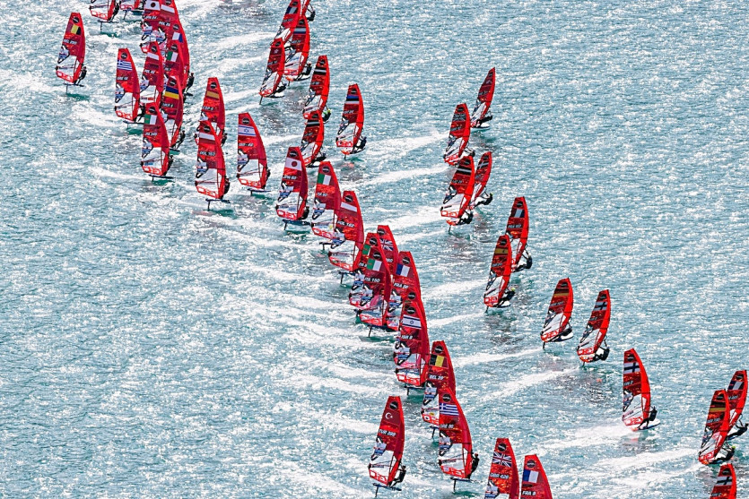 Les Mondiaux ont réuni plus de 75 planches rien que chez les hommes. Photo FFVoileLes épreuves olympiques de voile en 2024 sont en effet prévues non pas à Paris, mais dans le sud de la France. L’IQfoil, planche à voile avec foil, sera une chance de médaille pour le clan français, Nicolas Goyard sera évidemment un postulant… mais aussi son frère Thomas (29 ans), récent 2e des JO de Tokyo en RS : X et qui va se tourner vers l’IQfoil.