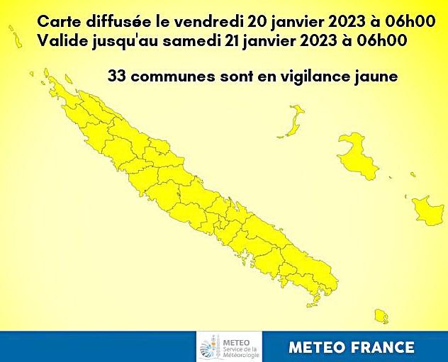 - Jean-Frédéric Gallo | Crée le 19.01.2023 à 23h00 | Mis à jour le 20.01.2023 à 10h27ImprimerVigilance jaune Source Météo FranceMétéo France a placé l’intégralité des communes en vigilance pluie et orage avec l’arrivée d’une nouvelle dépression tropicale.