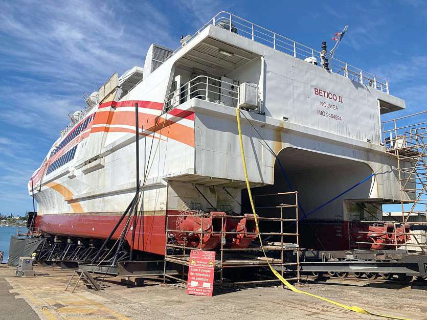 Pour la première fois, depuis sa mise en service en 2009, le navire qui assure la liaison entre Nouméa et les îles effectue son carénage à Nouville.