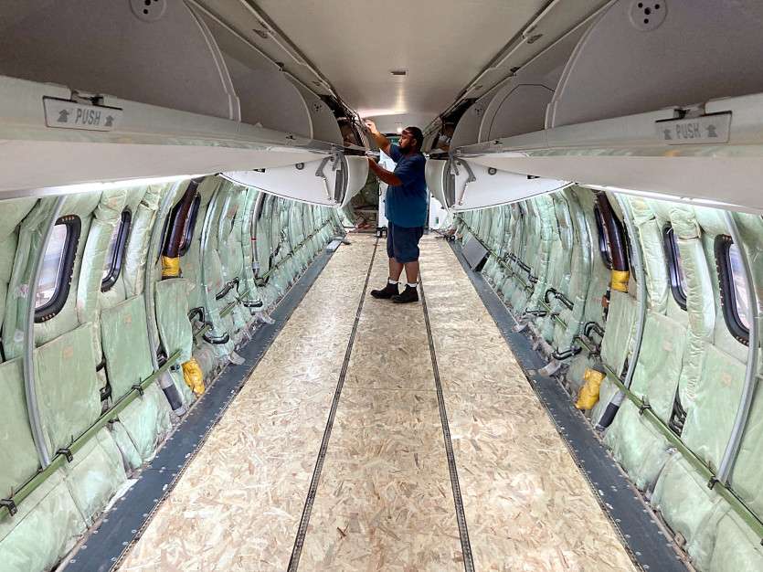 Tout doit disparaître. Ou presque. Sièges, planchers, parois intérieures et même certaines extérieures... L'avion actuellement dans le hangar d'Air Calédonie, à l'aérodrome de Magenta, n'est plus que l'ombre de lui-même.