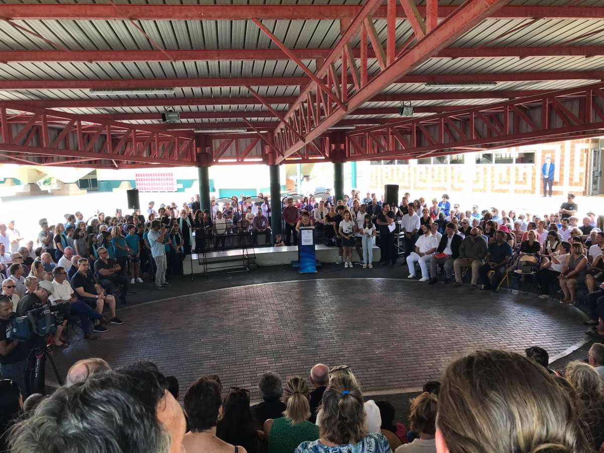 Plusieurs centaines de personnes sont réunies sous l’amphithéâtre du collège pour relayer cet hommage national au professeur d’histoire-géographie.