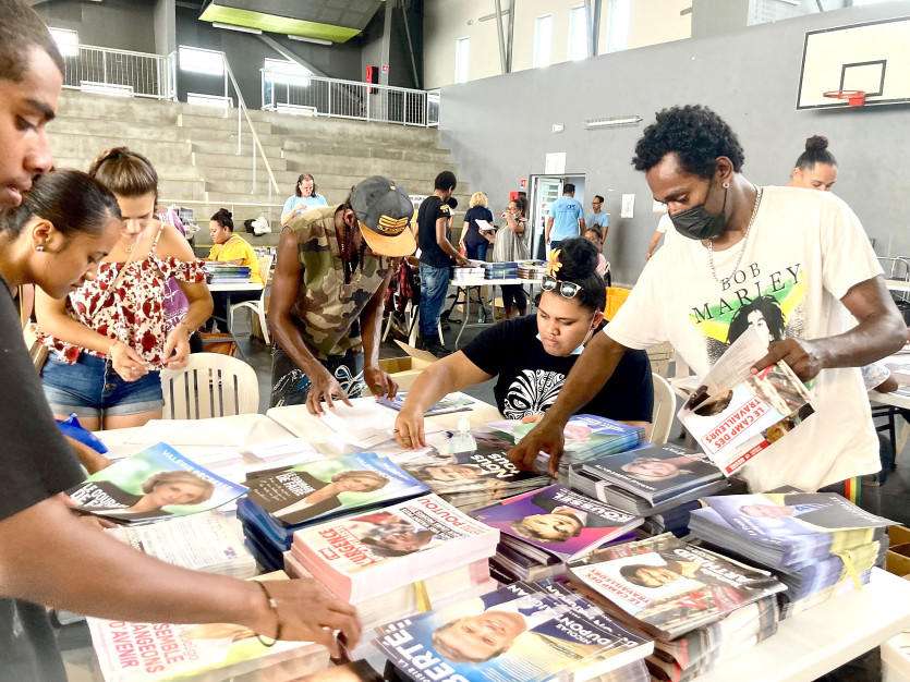 Près de 200 jeunes sont mobilisés pendant trois jours, à la salle Anewy, à la Vallée-du-Tir pour organiser l’envoi des propagandes électorales aux quelque 219 000 électeurs calédoniens recensés.