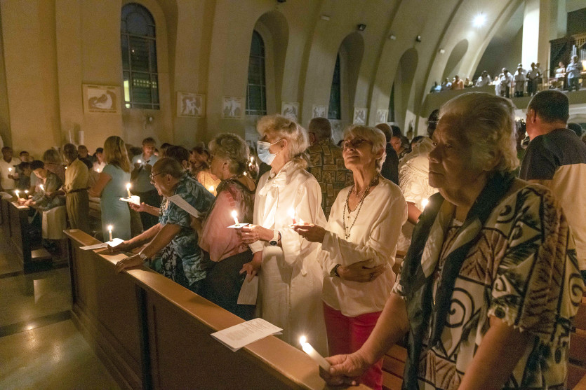 - A.T. | Crée le 17.04.2022 à 16h30 | Mis à jour le 17.04.2022 à 18h00ImprimerL’église du Vœu a fait le plein de fidèles, samedi, pour la veillée pascale. Niko VincentPour ce week-end pascal, les fidèles calédoniens participent en masse aux cérémonies religieuses.