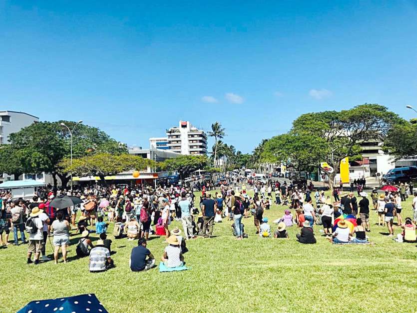 La manifestation contre l’obligation vaccinale et le pass sanitaire s’est tenue samedi matin sur la place Bir-Hakeim, à Nouméa.