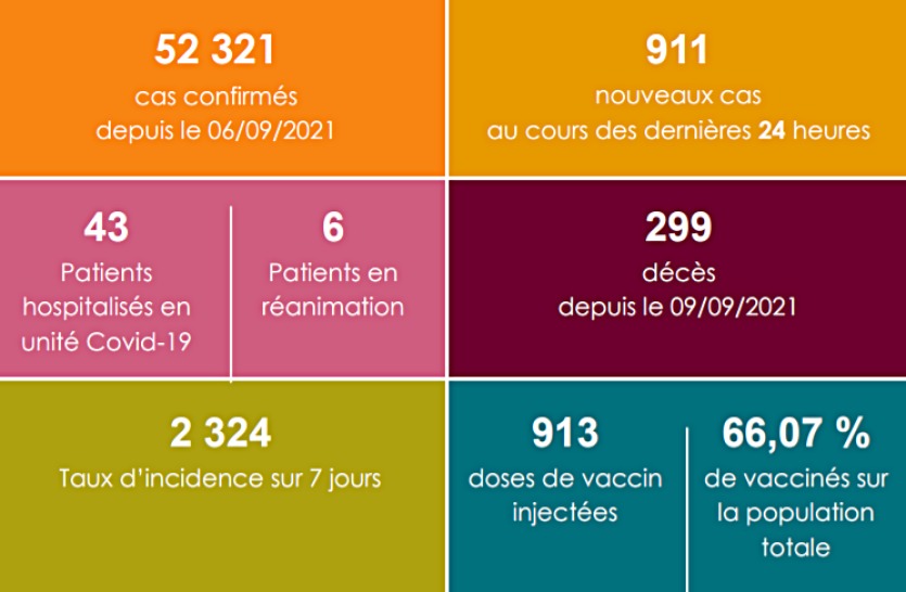 - Depuis mercredi 23 février, à 14 heures, aucun décès supplémentaire n'est à déplorer. Depuis le 9 septembre, 299 personnes sont décédées. Au cours des dernières 24 heures, 911 cas positifs ont été confirmés. Les cas positifs comptabilisés s'élèvent aujourd'hui à 52 321. Le nombreIl vous reste 71% de l'article à découvrir.Cet article est réservé aux abonnés.