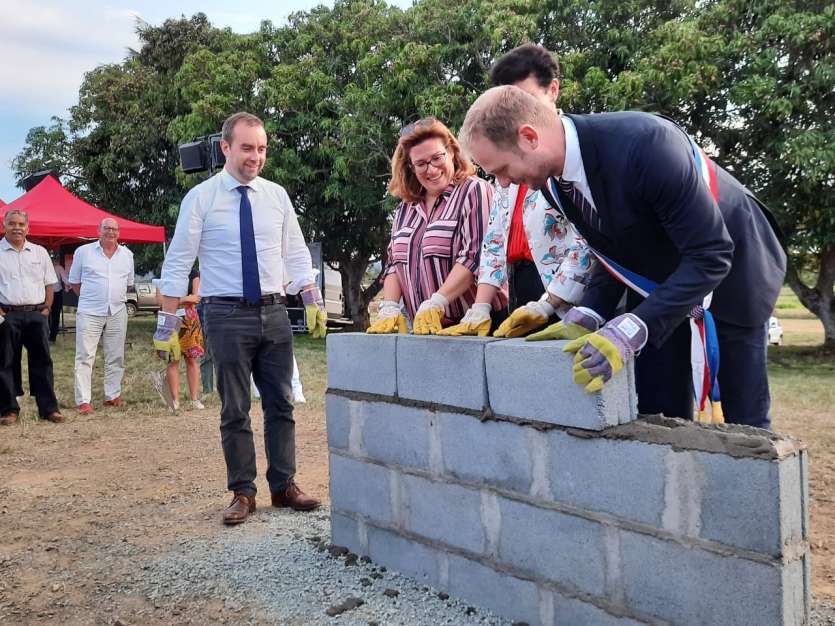 Le ministre des Outre-mer a posé ce mardi soir la première pierre du nouveau marché de La Foa, en présence d'une centaine de personnes, dont de nombreux élus.