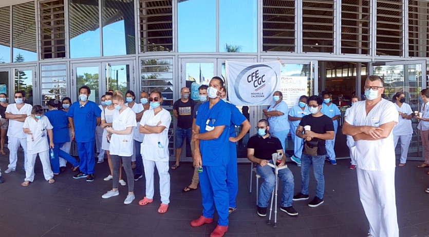 Une centaine de personnes se sont mobilisées autour du piquet de grève, mardi matin. Des représentants du syndicat sont entrés en négociation avec la direction de l’hôpital à 10 heures.