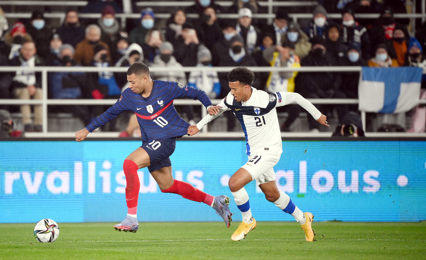 - AFP | Crée le 17.11.2021 à 09h00 | Mis à jour le 17.11.2021 à 09h13ImprimerL'attaquant Kylian Mbappé (en bleu) a inscrit le second but de l'équipe de France, mercredi contre la Finlande. Photo AFPDéjà qualifiés pour le Mondial 2022, les Bleus ont bouclé l'année 2021 sur une victoire tardive 2-0 mercredi matin à Helsinki contre la Finlande, avec Karim Benzema et Kylian Mbappé en buteurs.