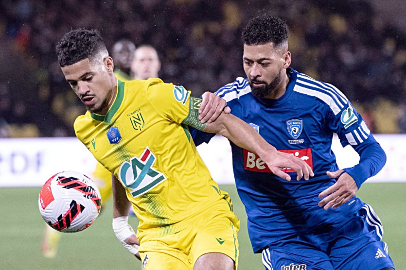 - AFP | Crée le 11.02.2022 à 09h40 | Mis à jour le 11.02.2022 à 10h01ImprimerLe milieu de Nantes Ludovic Blas (g) devance le défenseur de Bastia Lloyd Palun en demi-finale de Coupe de France, le 10 février 2022 à Nantes Photo AFPNantes a fêté vendredi le premier anniversaire de l'arrivée d'Antoine Kombouaré en battant Bastia (2-0) pour s'offrir une nouvelle demi-finale de Coupe de France début mars contre Monaco.