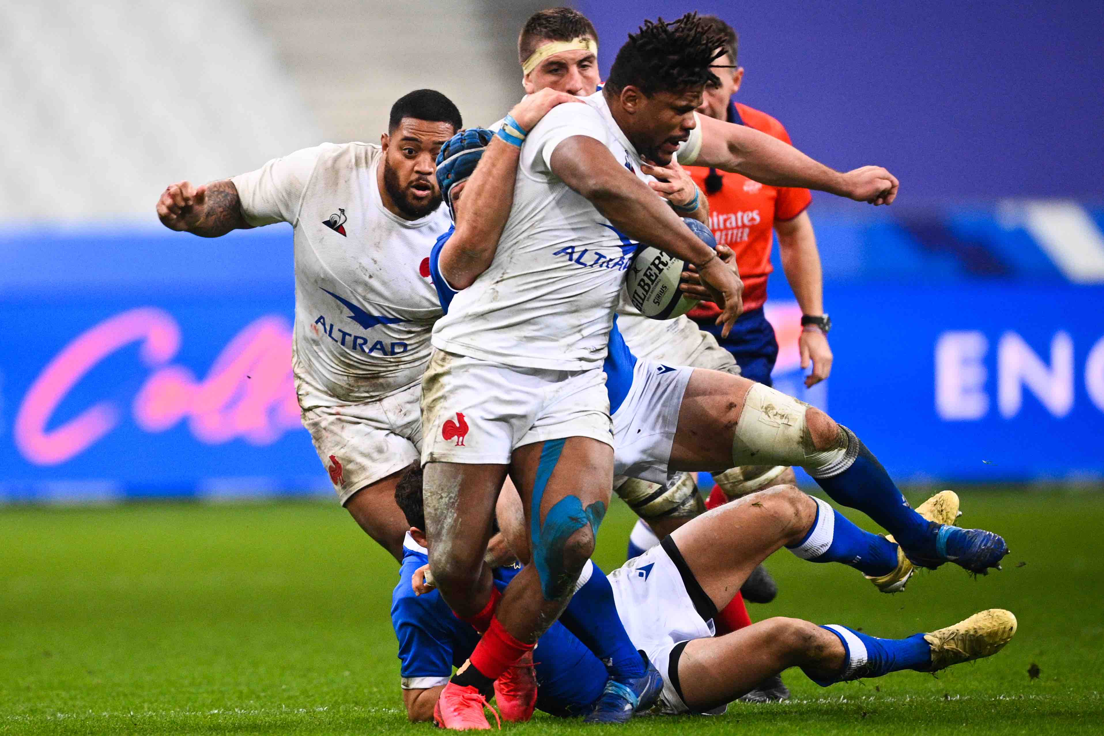 - | Crée le 29.11.2020 à 10h12 | Mis à jour le 29.11.2020 à 12h09ImprimerRodrigue Neti (en blanc, à gauche) a connu sa première sélection avec le XV de France. (Photo AFP)