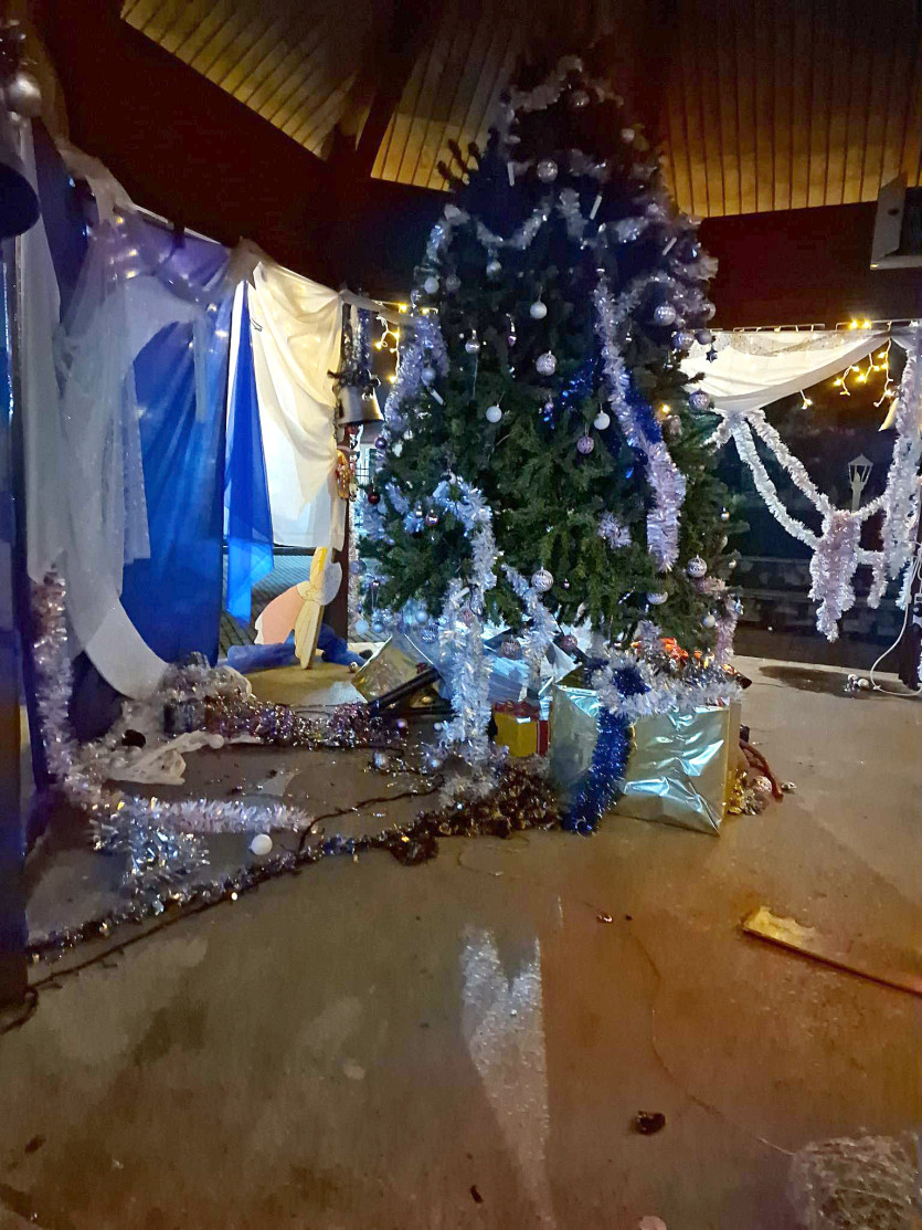 Les méfaits se sont déroulés dans la journée de Noël, dimanche. Ce sont les vigiles, venus assurer le gardiennage de nuit, qui ont constaté les dégâts. Le sapin de Noël, les figurines, les décorations, tout est bon à jeter. "Encore un investissement pour rien, de temps, d'argent, d'énergie, se sont plaints les bénévoles. C'est décourageant."