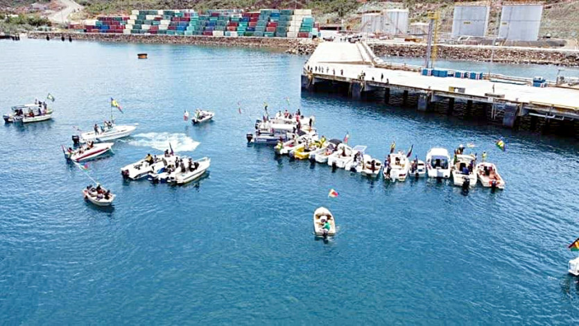 À l’appel du collectif "Usine du Sud = usine Pays", une vingtaine de bateaux étaient rassemblés ce jeudi matin dans la baie de Prony. L’idée : défendre "un environnement sain pour un climat de paix".
