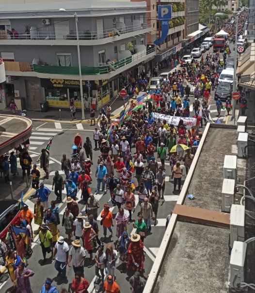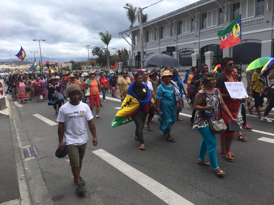(Photo : Y.M.)[10h08] La marche organisée par l'Ican et le collectif « Usine du Sud = usine pays » est arrivée devant le haussariat. Selon la police, 1 000 personnes participent à la marche, et plus de 5 000 selon les organisateurs de la mobilisation.