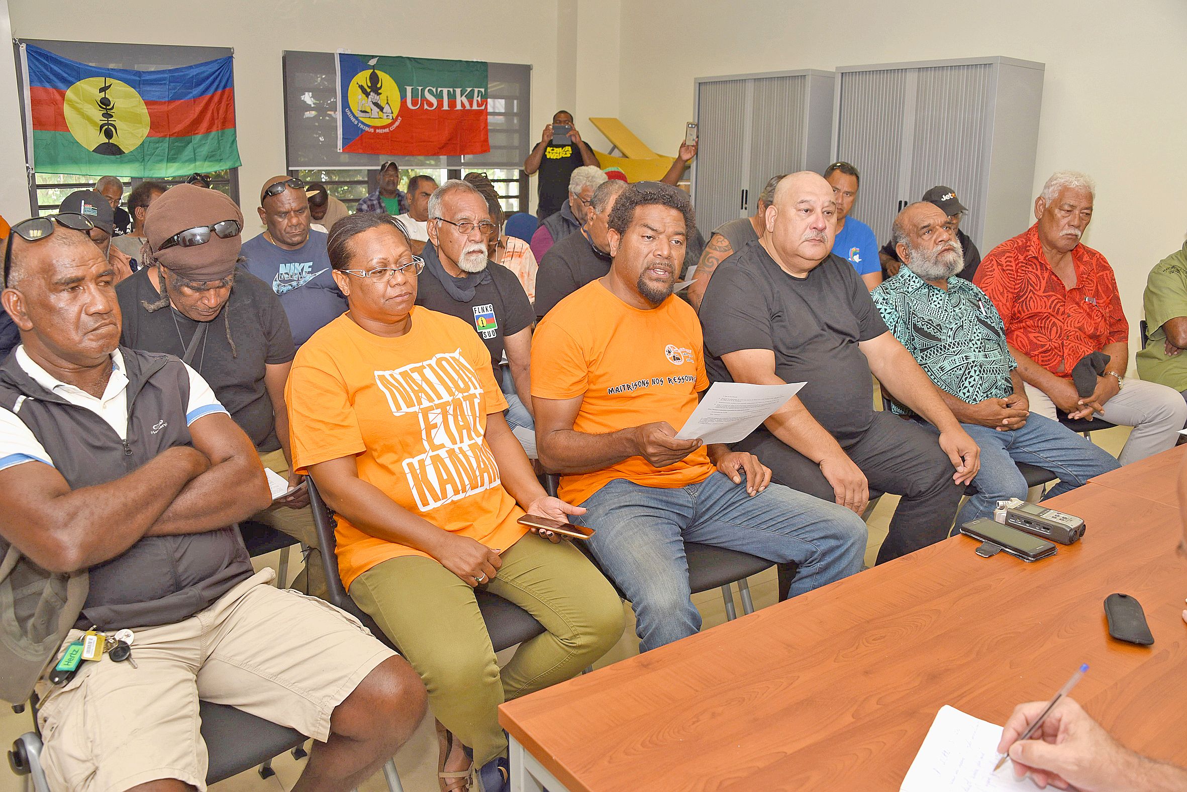 - | Crée le 16.11.2020 à 10h58 | Mis à jour le 16.11.2020 à 11h05ImprimerEn fin de semaine dernière, l’Ican et le collectif «Usine du Sud = usine pays» avaient réaffirmé leur détermination lors d’une conférence de presse au Sénat coutumier. Photo Thierry PerronLe conseil coutumier appelle également « tous ses ressortissants à participer à toute action “pacifique” dans les jours à venir lancée par l'Ican et le collectif »