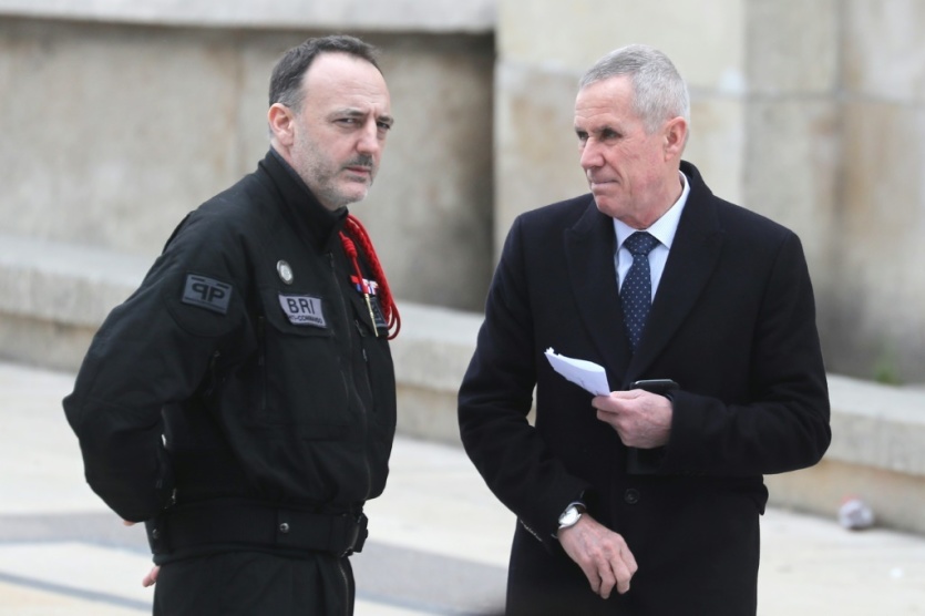Christophe Molmy, ancien patron de la BRI, et Francois Molins, ancien procureur de Paris lors des attentats de Novembre 2015, assistent à une cérémonie en hommage aux victimes du terrorisme, le 11 mars 2020 à Paris Ludovic Marin [AFP/Archives]